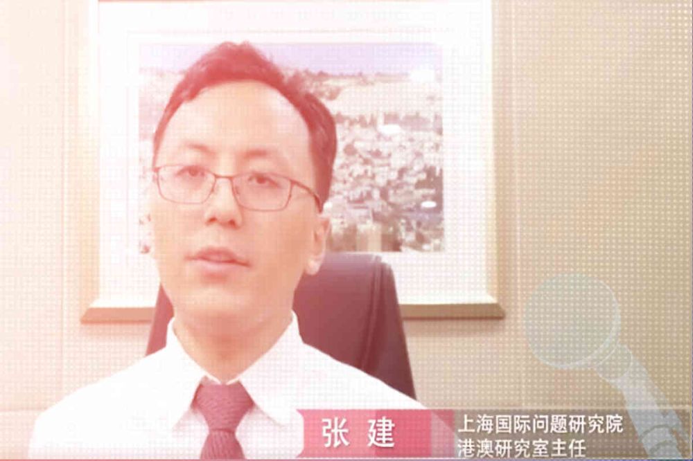Screenshot of Zhang Jian speaking to Kankan News in June 2020 on the question of Hong Kong.