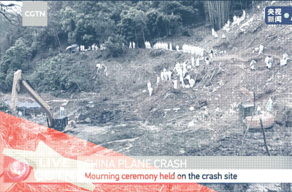 Sunday, March 28, marked day 7 since the crash, generally an important day in Chinese culture for marking tragedies and remembering the victims. In anticipation, a ceremony was held at the crash site on Saturday, all of the rescue and response team members present observing three minutes of silence for those who perished.